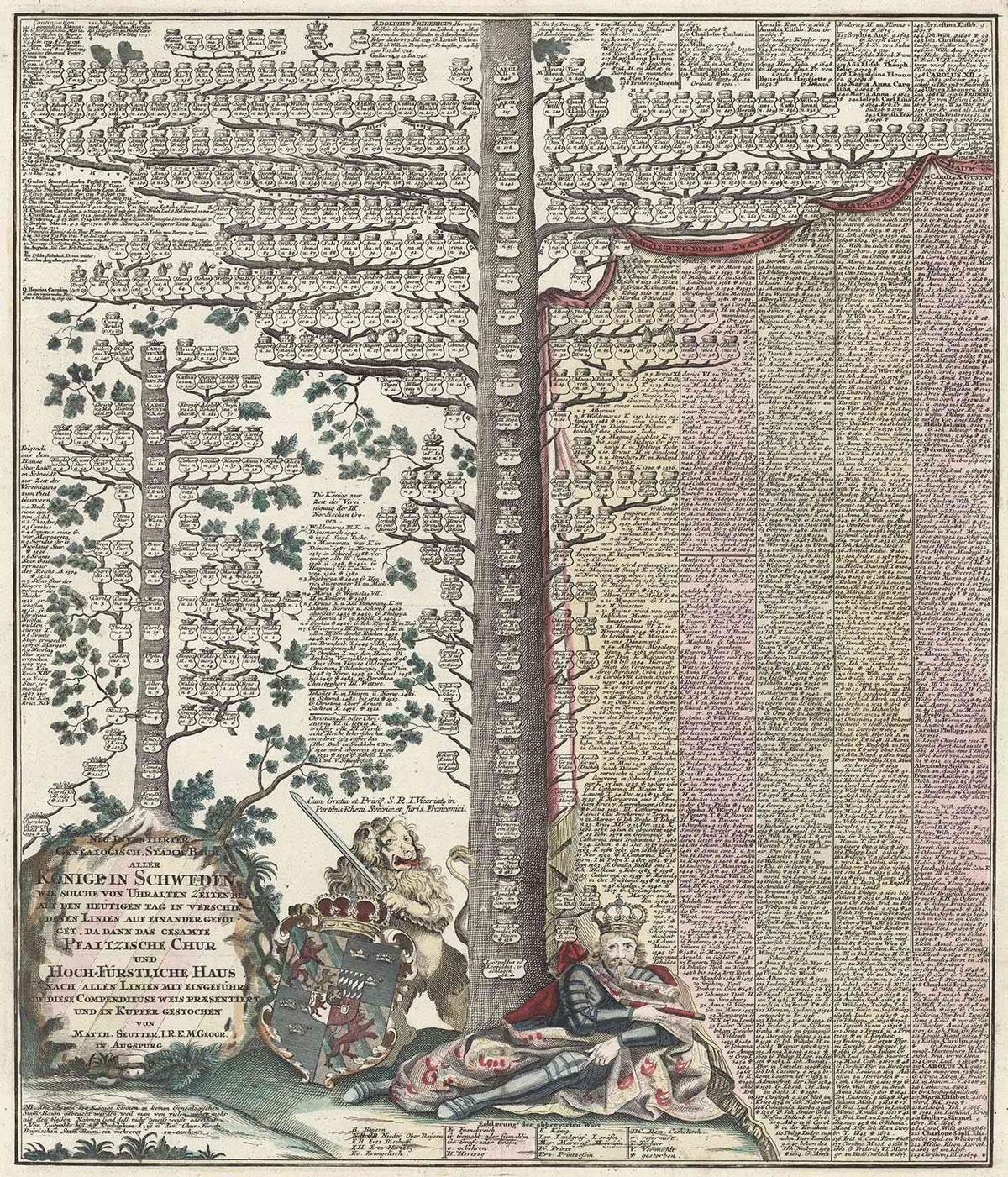 Stammbäume, die in teuren druckgraphischen Verfahren vorwiegend als Einzelblätter hergestellt wurden, fanden seit dem 15. Jahrhundert weite Verbreitung.
