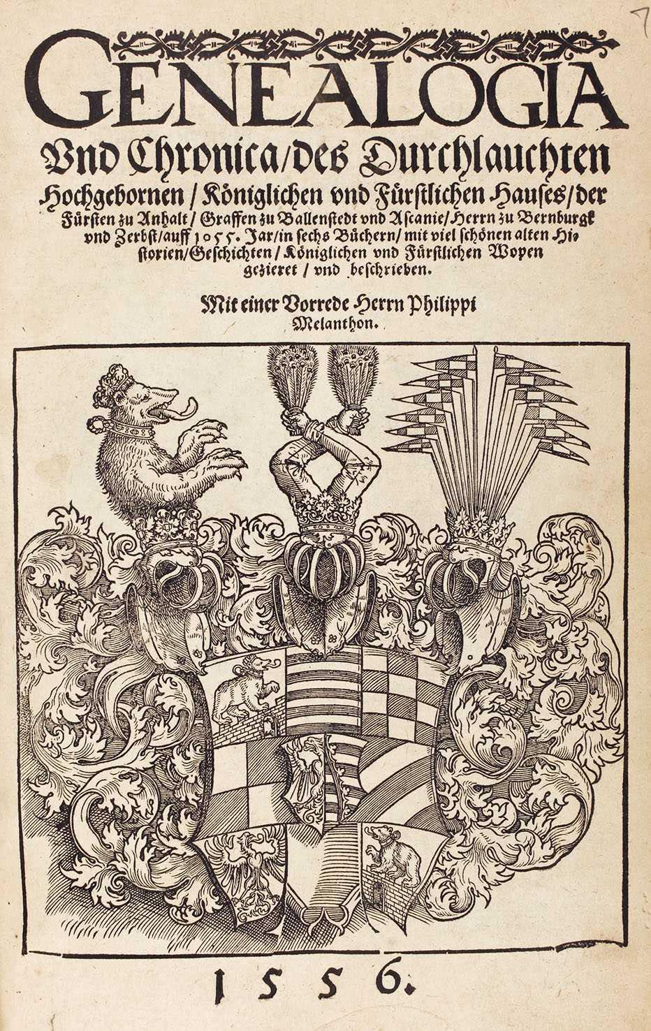 Eines der wichtigsten Kriterien bei der Rangzuweisung war das Alter einer Dynastie. Cyriacus Spangenberg (1528-1604) formulierte in seinem Werk „Adels Spiegel“, einem der wichtigsten Adelstraktate dieser Zeit, dass der ‚Erbadel‘ seine Stellung und Achtung „wegen altes herkomens. Wie denn alter vnd Antiqueteten allezeit aller wirden vnd ehren werth sind“ genieße. Je weiter die genealogischen Anfänge zurücklagen, umso größer waren die daraus abgeleiteten Herrschaftsansprüche. Mit diesem Ziel wurden umfangreiche und prächtig gestaltete Spezialgenealogien von den Höfen in Auftrag gegeben und finanziert. So erhielt z. B. Ernst Brotuff (1497-1565) vom Fürsten Georg III. von Anhalt (1507-1553) den Auftrag, eine Genealogie des anhaltinischen Fürstenhauses zu verfassen.